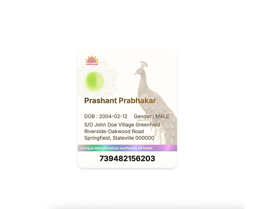 A component for displaying aadhar card